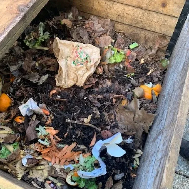 Le formateur a relevé quelques erreurs dans notre compost. En image les gestes à corriger :